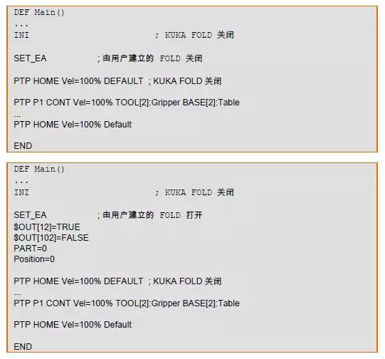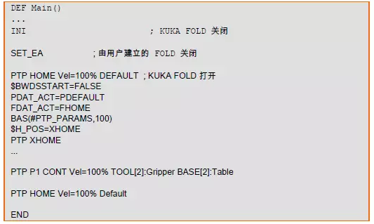 除此之外,用戶(專家用戶組以上)還可以創建自己的 Fold。這些 Fold 例如可以由程序員使用,使用時雖然可以通知操作人員在程序的一定位置處發生的事件,但在后臺仍保持實際的 KRL 句法。Fold 通常在創建后首先顯示成關閉狀態。